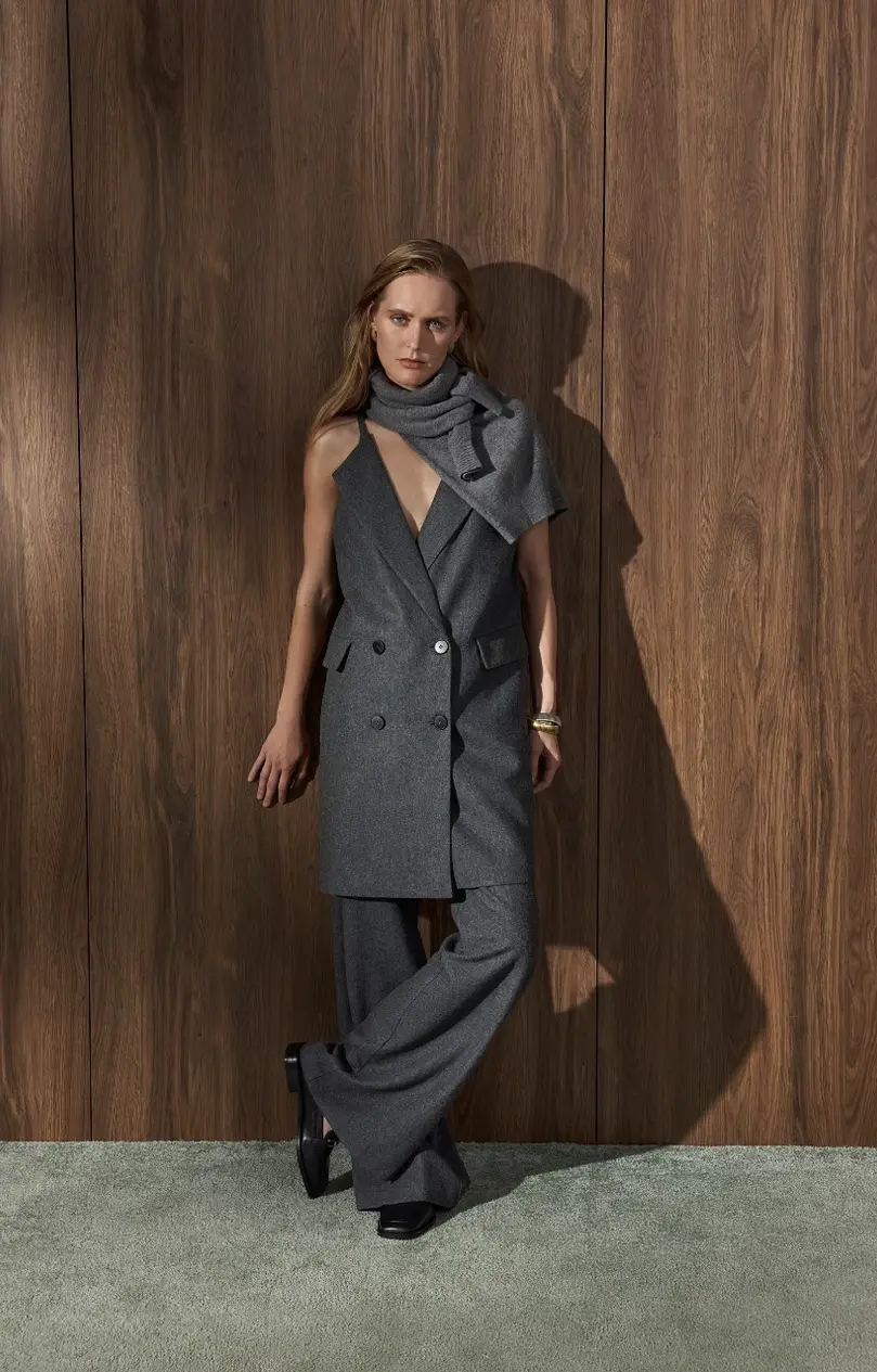 Палитра коллекции включает базовые черный и серый, сливочно-молочный, бежевый меланж, глубокий синий и коричневый, а также акцентные мягкий желтый и приглушенный розовый.