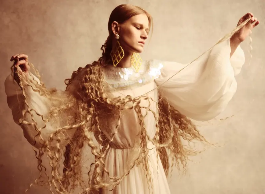 Бренд Alena Akhmadullina представил новую коллекцию под названием "Белогорье". Коллекция была вдохновлена народными промыслами Белгородской области, где существует уникальный орнамент – "черноузорная вышивка". Дизайнеры использовали геометрические узоры, заимствованные из древней славянской культуры, для создания принтов и вышивок.