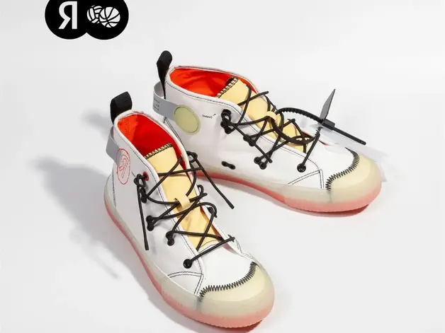 В «Яндекс Музее» были представлены новые кеды, выполненные в сотрудничестве с компанией «Два мяча». Эти кеды особенны своей шнуровкой, которая повторяет фрагмент схемы нейросетей.